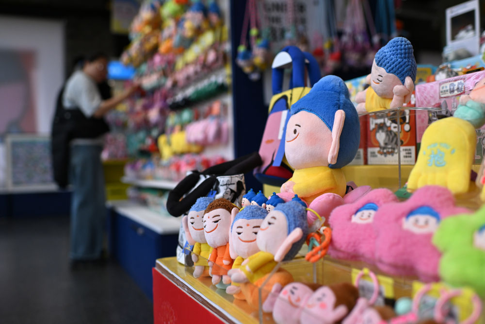 4月16日,游客在山西大同云岡石窟文創(chuàng)空間選購(gòu)文創(chuàng)產(chǎn)品。歷經(jīng)滄桑