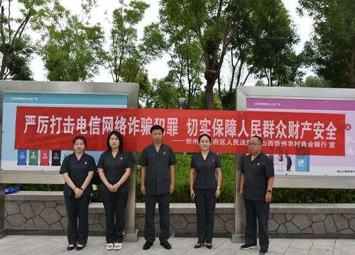 為深入貫徹落實(shí)習(xí)近平總書記關(guān)于打擊治理電信網(wǎng)絡(luò)詐騙犯罪工作的重要指示精神,進(jìn)一步加大反詐宣傳力度、密度、強(qiáng)度,近日,忻府區(qū)法院在全區(qū)開展“嚴(yán)厲打擊電信網(wǎng)絡(luò)詐騙犯罪”宣傳活動(dòng),積極營(yíng)造濃厚反詐氛圍。