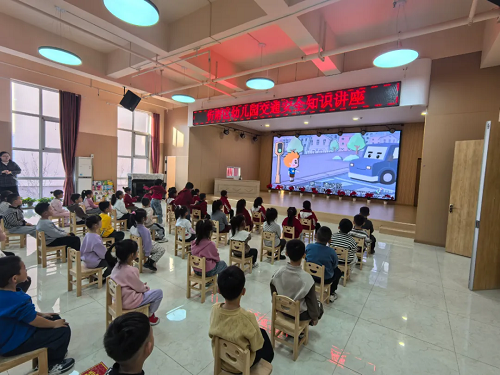 活動中,交警向園內(nèi)幼兒及教職工播放了幼兒交通安全宣傳視頻,通過對視頻內(nèi)容的講解,引導(dǎo)孩子們進(jìn)一步理解交通安全法規(guī)與出行安全。