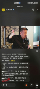從山西古代壁畫(huà)隱藏的密碼、傳統(tǒng)壁畫(huà)艷麗制作工藝的挖掘研究,現(xiàn)場(chǎng)觀眾聽(tīng)得津津有味、頻頻點(diǎn)頭,直播間網(wǎng)友更是踴躍留言、頻繁互動(dòng),網(wǎng)友@寸草三心留言:“非常好的講座,學(xué)習(xí)到很多歷史知識(shí)”;還有網(wǎng)友留言探討山西古代壁畫(huà)的重要價(jià)值。直播收尾前,如何更好地保護(hù)山西低等級(jí)壁畫(huà)?介子平老師表示,文物不分“高低”,每個(gè)人審美不一樣,無(wú)論是低等級(jí)別還是其他級(jí)別,山西古代壁畫(huà)都值得大家去保護(hù)、去珍藏、去解讀;史宏蕾教授也呼吁,大家一定要關(guān)注那些散落在鄉(xiāng)間田野里的低等級(jí)壁畫(huà),低等級(jí)壁畫(huà)中也有極其重要的價(jià)值。