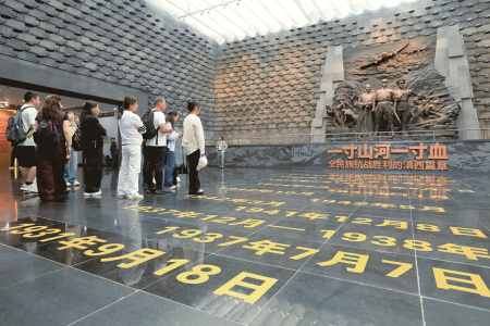 圖②:9月18日,人們?cè)谇秩A日軍南京大屠殺遇難同胞紀(jì)念館參觀。