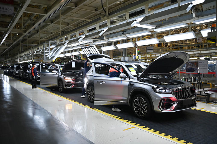 來到浙江吉利控股集團設(shè)在西安的整車生產(chǎn)基地,基于強大的數(shù)字平臺和智能化設(shè)備,這里可實現(xiàn)24小時不間斷“黑燈生產(chǎn)”,不同設(shè)備、機器人之間自主協(xié)調(diào)運作、靈活響應,沖壓、焊接、噴涂自動化率均達到100%。