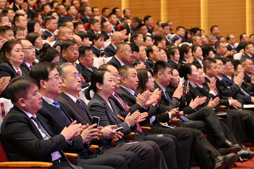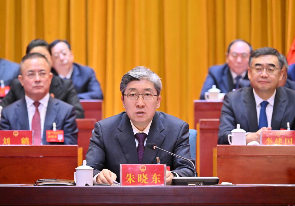 會議閉幕。馮曉磊攝 第四次全體會議應(yīng)出席代表343人,實(shí)出席代表292人,符合法定人數(shù)。 會議表決通過了關(guān)于忻州市人民政府工作報(bào)告的決議、關(guān)于忻州市國民經(jīng)濟(jì)和社會發(fā)展第十五個五年規(guī)劃綱要的決議、關(guān)于忻州市2025年國民經(jīng)濟(jì)和社會發(fā)展計(jì)劃執(zhí)行情況與2026年國民經(jīng)濟(jì)和社會發(fā)展計(jì)劃的決議、關(guān)于忻州市2025年全市和市本級預(yù)算執(zhí)行情況與2026年全市和市本級預(yù)算的決議、關(guān)于忻州市人民代表大會常務(wù)委員會工作報(bào)告的決議、關(guān)于忻州市中級人民法院工作報(bào)告的決議、關(guān)于忻州市人民檢察院工作報(bào)告的決議。 朱曉東代表市委向大會的圓滿成功表示熱烈的祝賀,向一直以來拼搏進(jìn)取、耕耘奉獻(xiàn)的各位代表致以崇高的敬意。他說,過去的五年,是忻州發(fā)展歷程中極不尋常、極不平凡的五年。我們堅(jiān)持以習(xí)近平新時代中國特色社會主義思想為指導(dǎo),深入學(xué)習(xí)貫徹習(xí)近平總書記對山西工作的重要講話重要指示精神,全面貫徹落實(shí)黨的二十大和二十屆歷次全會精神,扎實(shí)推進(jìn)穩(wěn)增長、調(diào)結(jié)構(gòu)、促轉(zhuǎn)型、惠民生、防風(fēng)險(xiǎn)等各項(xiàng)工作,全市產(chǎn)業(yè)轉(zhuǎn)型蹄疾步穩(wěn),改革創(chuàng)新持續(xù)深化,融通發(fā)展大步向前,民生保障不斷改善,文化事業(yè)繁榮發(fā)展,美麗忻州、平安忻州、清廉忻州建設(shè)全面提質(zhì),中國式現(xiàn)代化忻州實(shí)踐邁出了堅(jiān)實(shí)步伐。當(dāng)前,我們已經(jīng)踏上“十五五”的新征程,做好全年工作,奮力實(shí)現(xiàn)“開門紅”“全年紅”,確?!笆逦濉遍_好局、起好步,意義深遠(yuǎn),責(zé)任重大。面對新形勢、新任務(wù)、新機(jī)遇、新挑戰(zhàn),我們必須拿出比以往更加堅(jiān)定的信心、更加昂揚(yáng)的斗志、更加務(wù)實(shí)的作風(fēng),以“辦法總比困難多”的勇氣攻堅(jiān)克難,向組織、向歷史、向人民交上一份合格答卷。全市各級人大及其常委會,要繼續(xù)走在前、干在先,當(dāng)表率、作示范,團(tuán)結(jié)帶領(lǐng)各級人大代表一心一意謀發(fā)展、凝心聚力干事業(yè),不斷推動人大工作再上新臺階,努力在中國式現(xiàn)代化忻州實(shí)踐中展現(xiàn)新?lián)?dāng)。