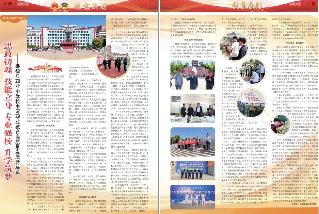 在晉西北的黃河之濱,保德縣這塊蘊(yùn)含著深厚歷史底蘊(yùn)與蓬勃生機(jī)的土地上,一所致力于培養(yǎng)新時(shí)代技術(shù)技能人才、服務(wù)區(qū)域經(jīng)濟(jì)社會(huì)發(fā)展的中等職業(yè)學(xué)?!5驴h職業(yè)中學(xué)校,正以其鮮明的辦學(xué)特色、扎實(shí)的育人成果和昂揚(yáng)的奮進(jìn)姿態(tài),譜寫著一曲新時(shí)代職業(yè)教育的精彩華章。在保德縣委、縣政府頂層設(shè)計(jì)、堅(jiān)強(qiáng)領(lǐng)導(dǎo)下,保德職中堅(jiān)持黨的教育方針,落實(shí)立德樹人根本任務(wù),緊密對(duì)接國(guó)家戰(zhàn)略與地方需求,走出一條“立德樹人有溫度、技能培養(yǎng)有力度、升學(xué)就業(yè)有高度、服務(wù)地方有深度”的特色發(fā)展之路,探索出一條具有自身特色的高質(zhì)量發(fā)展之路,成為保德教育高質(zhì)量發(fā)展全局上的重要版塊。